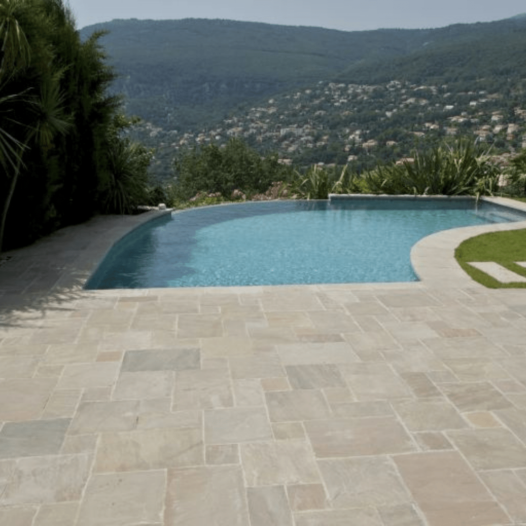 Le travertin présente plusieurs avantages qui expliquent son succès autour des piscines. D'abord, il ne chauffe pas excessivement au soleil. Même en plein été, il reste agréable sous les pieds, ce qui est un vrai confort au quotidien.