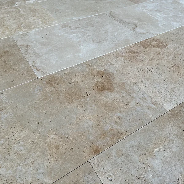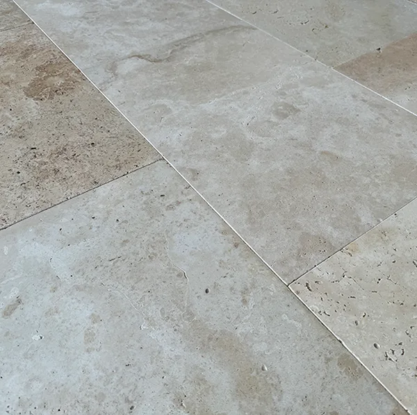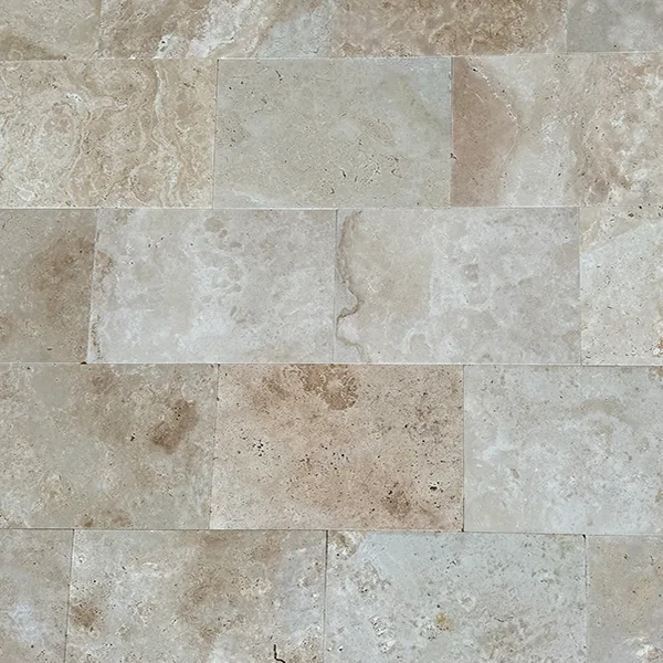 Le travertin (EN12670) est une roche sédimentaire carbonatée de couleur beige nuancé à fond crème. Des nuances de couleurs et/ou de granulométrie peuvent exister entre les différents lots et même au sein du même lot. Il doit être soigneusement choisi en fonction de la destination prévue. Il est extrait dans la région de Denizli en Turquie, c’est une roche peu ou pas poreuse et surtout non gélive. Le travertin peut être poser en intérieur comme en extérieur.
