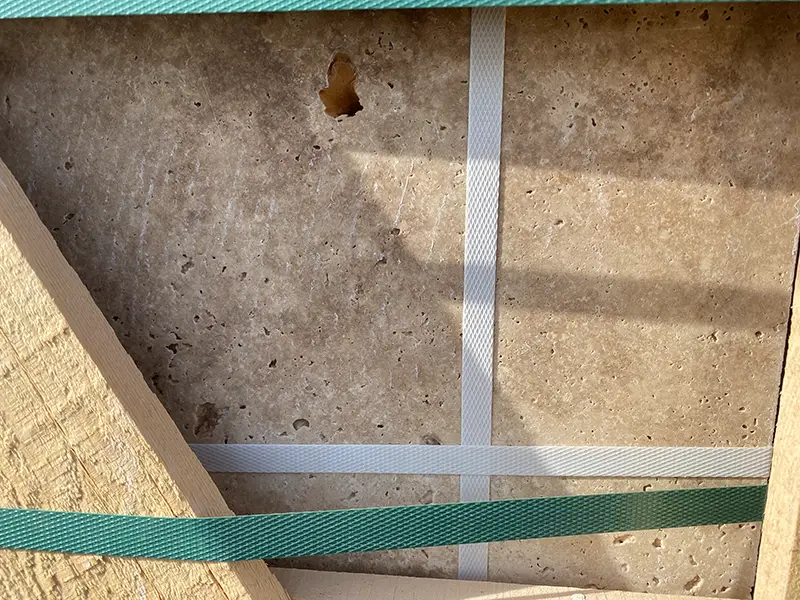 Le travertin (EN12670) est une roche sédimentaire carbonatée de couleur beige nuancé à fond crème. Des nuances de couleurs et/ou de granulométrie peuvent exister entre les différents lots et même au sein du même lot. Il doit être soigneusement choisi en fonction de la destination prévue. Il est extrait dans la région de Denizli en Turquie, c’est une roche peu ou pas poreuse et surtout non gélive. Le travertin peut être poser en intérieur comme en extérieur.