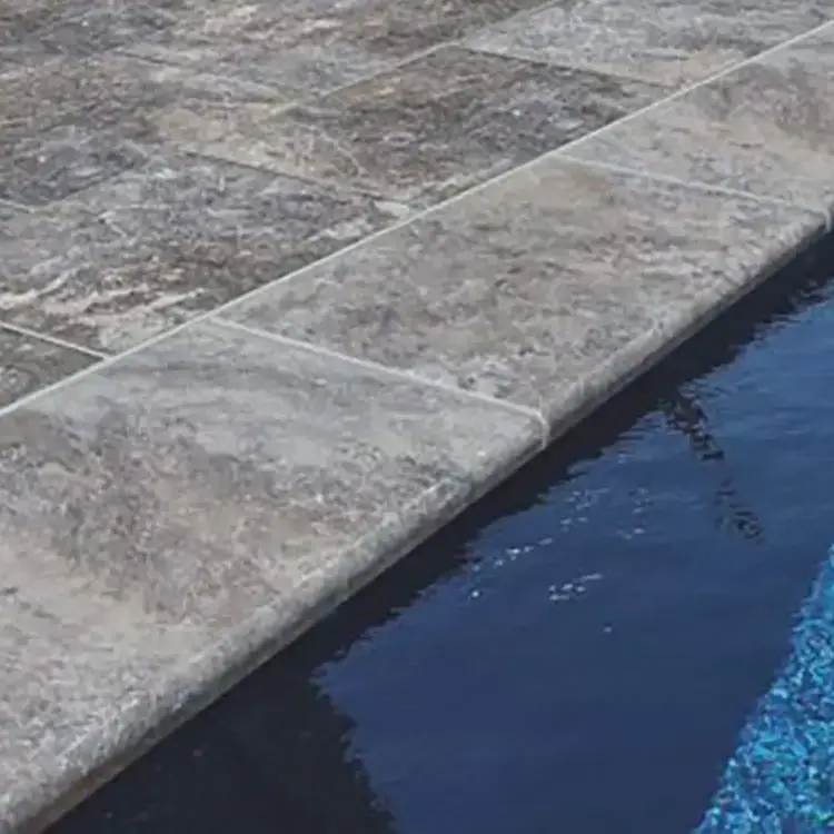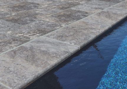 Margelles travertin 1er choix silver 1 bord arrondi 33x61 cm ép. 3 cm Unité de vente 0.61 ml /pièce