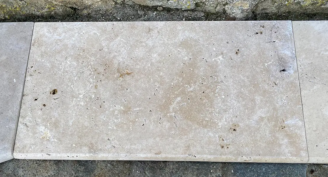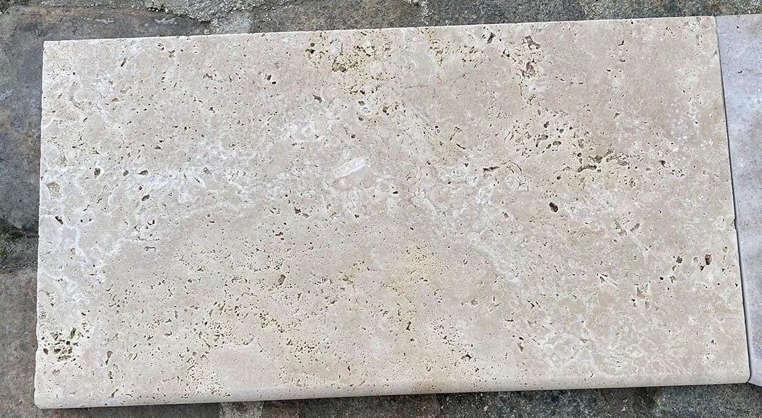 Margelles travertin mix beige rustic 33x61 cm ép.3cm - 1 bord arrondi - 0.61 ml par unité de vente