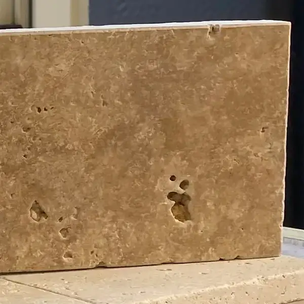 Le travertin (EN12670) est une roche sédimentaire carbonatée de couleur beige nuancé à fond crème. Des nuances de couleurs et/ou de granulométrie peuvent exister entre les différents lots et même au sein du même lot. Il doit être soigneusement choisi en fonction de la destination prévue. Il est extrait dans la région de Denizli en Turquie, c’est une roche peu ou pas poreuse et surtout non gélive. Le travertin peut être poser en intérieur comme en extérieur.